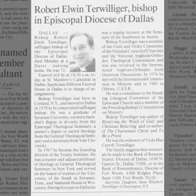 Our educational building is named “Terwilliger” in honor of the Rt. Rev. Dr. Robert Elwin Terwilliger, Suffragan Bishop of the Episcopal Diocese of Dallas.