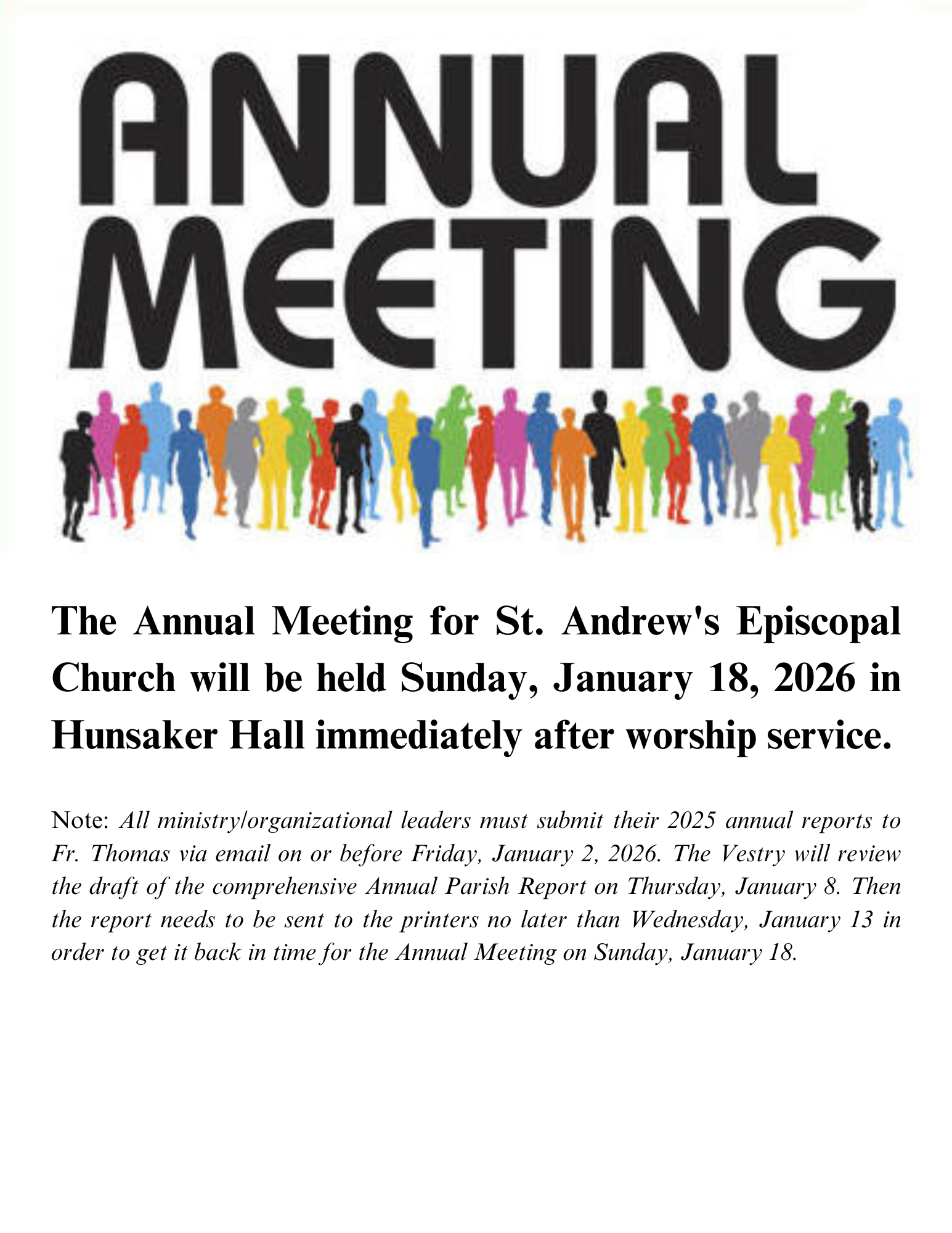 January 17 @ Annual Parish Meeting (catered BBQ w/ potluck sides)
